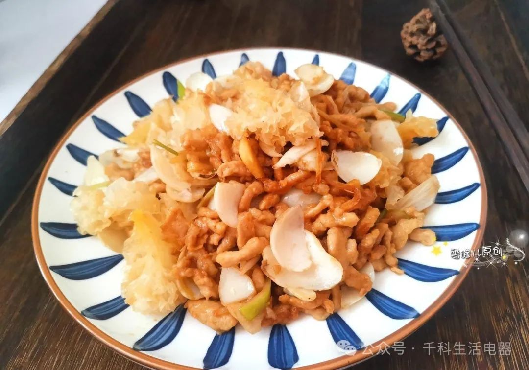 3、倒入銀耳和百合,繼續(xù)翻炒均勻,加鹽調(diào)味,即可上桌。